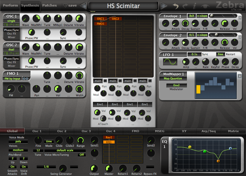 While every one of those 10 full timers takes over various responsibilities, there are 4 – including myself – focussed on development, 3 on graphics and web content, 2 on support and preset design, 1 is coordinating things and cooking meals.[/cs_text][/cs_column][/cs_row][/cs_section][cs_section style=”margin: 0px; padding: 0px; “][cs_row style=”margin: 0px auto; padding: 0px; ” bg_color=”#c4c4c4″][cs_column style=”padding: 0px; ” bg_color=”#ffffff” fade_animation=”in” fade_animation_offset=”45px” fade_duration=”750″ type=”1/1″][x_custom_headline level=”h6″ looks_like=”h6″ accent=”false”]How long do you work (on average) on a new prototype and how much time do you invest to create a new plug-in in total? Is there something you like most by creating new plug-ins and what is the most “pain” for you?[/x_custom_headline][cs_text text_align=”none”]That depends. A new product probably takes about a year of work. We’ve released 10 or so products in 13 years, plus freebees and magware. What I like most about it is the creative part, while the most painful part is finding bugs. Latter isn’t creative work, it’s just something one has to deal with.[/cs_text][/cs_column][/cs_row][/cs_section][cs_section style=”margin: 0px; padding: 0px; “][cs_row style=”margin: 0px auto; padding: 0px; ” bg_color=”#c4c4c4″][cs_column style=”padding: 0px; ” bg_color=”#ffffff” fade_animation=”in” fade_animation_offset=”45px” fade_duration=”750″ type=”1/1″][x_custom_headline level=”h6″ looks_like=”h6″ accent=”false”]What is the best selling product from u-he and what is your favourite plug-in?[/x_custom_headline][cs_text text_align=”none”]There’s an ongoing fight between Diva and Zebra for the top spot. Diva usually sells a few units more each month while Zebra has had a great head start of several years. At the moment Zebra has a small lead, but we expect Diva to overtake Zebra in a few months, with Zebra coming back after the next update.