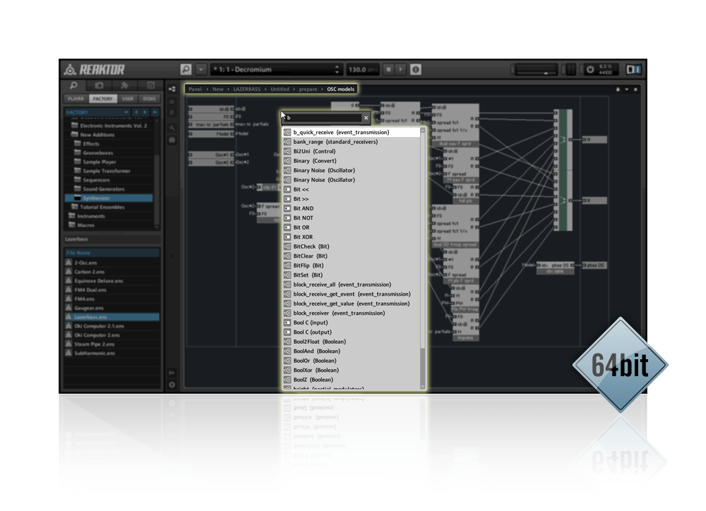 Native Instruments abounced the release of Reaktor 5.6. Reaktor will now be available as 64Bit version for Mac and Windows.