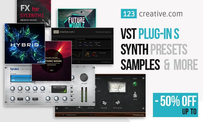 123creative has announced special discounts up to 50% off on many VST plug-ins, synths presets and samples useful for all electronic music genres.
