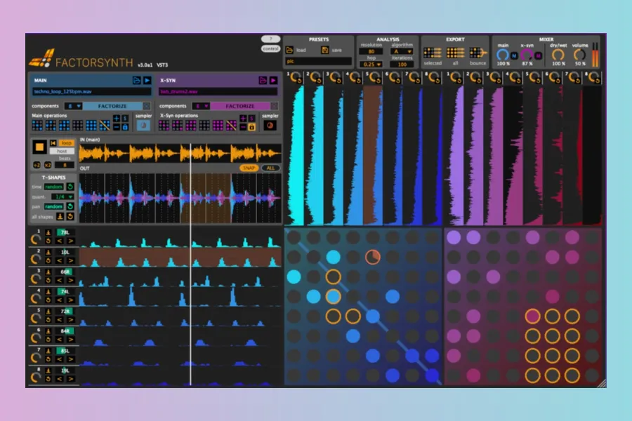 Anemond released Factorsynth 3, a unique tool for sound deconstruction. It breaks down audio samples into a set of elements using a machine learning algorithm. The pieces are ready for you to rearrange and remix in infinite ways to create complex textures, rhythmic and melodic variations, hybrid sounds and a full new range of sonic transformations!