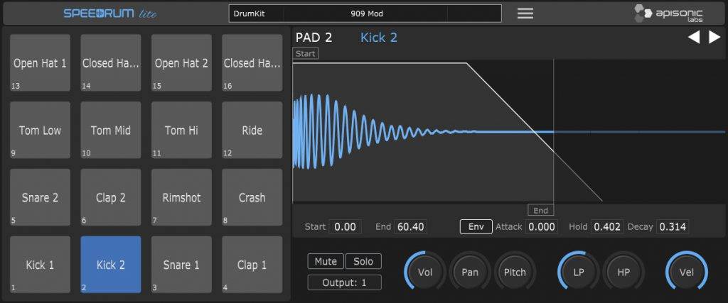 Apisonic Labs announces the release of a free percussion sampler plugin – Speedrum Lite. Fast and easy for use. 16 pads, drag and drop, essential controls…