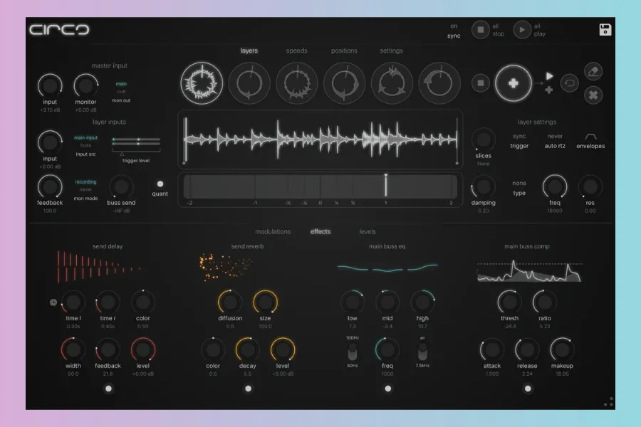 - Multi-Layered Looping: Circa features six independent layers that can sync with each other or the host, allowing for versatile recording options.