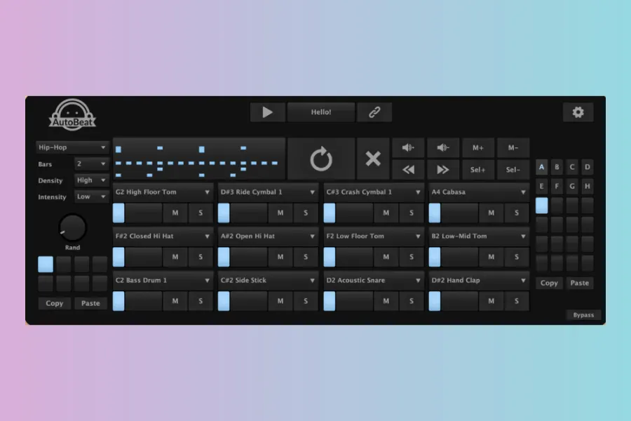 AutoBeat is a novel 12-track MIDI beat generator plugin that leverages the power of AI to generate unlimited beats in various styles. From hip-hop to techno, AutoBeat never runs out of ideas. The workflow is simple: choose your parameters, click on the generate button, edit, share or clear and start again.