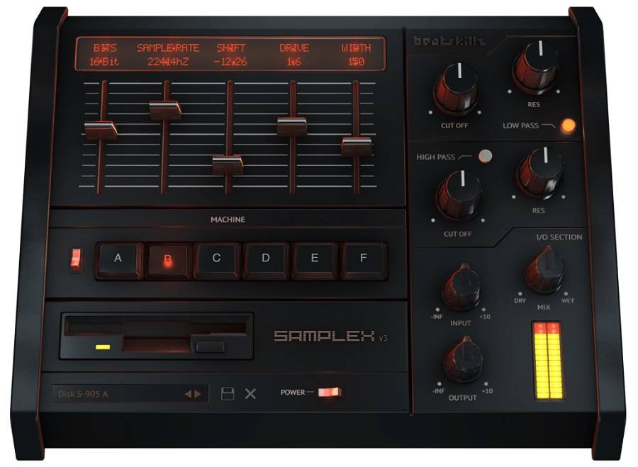 Standard Variable Sample Rate, Bitrate, and an Aliasing Control (Shift) are also present. Beatskillz also added IR Machine on/off feature, POP UP value display for the I/O section, Filter Section along with 2 New Sampler Models.