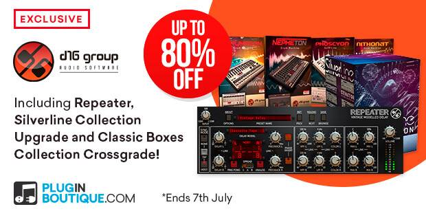 Save 80% off the fantastic Repeater vintage modelled delay plugin and buy now for only £15.99 / $19.00! ALL current D16 users can also take advantage of 2 special Loyalty Crossgrades to their Silver Line and Classic Boxes Collections and save 55% off each.