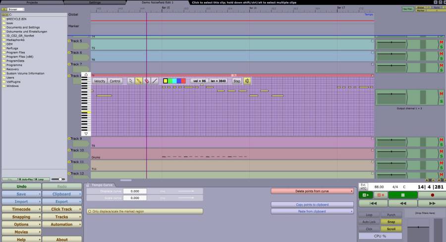 Tracktion 4 has been released as a freeware-version. The DAW-sequencer with the one-window-concept, allows you to skip through different tabs and is easy to manage, especially for beginners. It includes eight effects, some instruments (like a sample-player) and supports the Linux- and Mac-systems (also for 64 Bit).