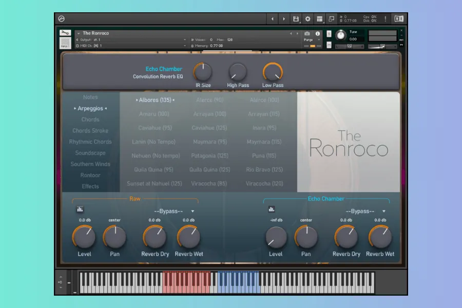 - Effects: this menu offers another spectrum of effects produced by playing the ronroco in unusual ways.