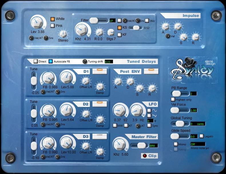 Elena Design has released yet the compact delay-based synthesizer Synlay, which is capable of producing very diverse, original timbres and of high quality: from blown to orchestral sounds, from plucked strings to brasses, from amazing basses to synthetic sounds.