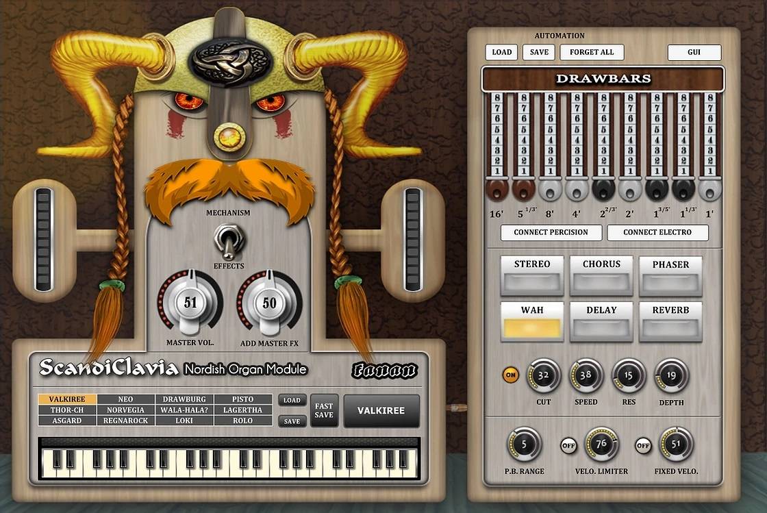 Scandiclavia also offers a full section of built in effects (stereo widener, chorus, phaser, wha-wha, reverb and delay), advanced midi mode and dedicated organs alike draw-bars system.