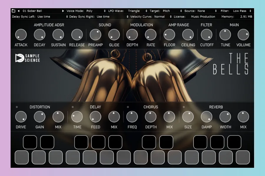 The Bells is a virtual instrument featuring the sound of tuned bell sounds. Different sound design techniques have been used to create a range of highly usable bell tones. From resynthesized acoustic bell to FM synthesis and physical models. The instrument also features a nice set of real-life acoustic bell sounds. The onboard effects of the plugin version make this plugin highly versatile for different genres of music from trap to modern classical music.