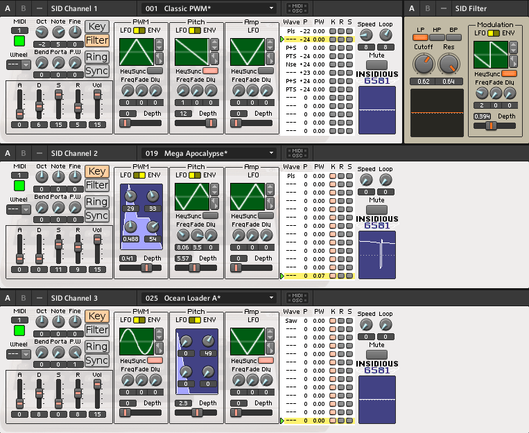 Mike Clarke has released a free emulation of the legendary Commodore 64 sound chip. It includes three channels with the Triangle, Square/PWM, Sawtooth, Noise-waveforms and combined oscillators, the original saturation filter, ring modulation, LFOs , a step table and all the technologies of the SID chip. The sound is very authentic and is to be one of the best SID emulations. Unfortunately Insidious 6581 is only working for Reaktor users, but if you’re using the free Reaktor Player you can play around with Insidious 6581 and render some sounds within a quarter of an hour. Here’s the link: