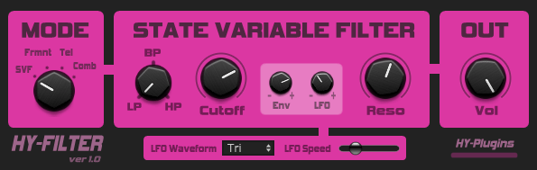 HY-Plugins has released HY-Filter, a multi-filter with Shelving filter (LP, BP, HP), formant vowel-filter, telephone line filter and comb filter. The tool is available for PC and Mac for free.