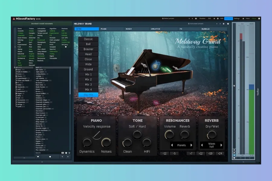 Owners of MSoundFactory Player — effectively a free (cut-down) version of MeldaProduction’s mighty modular virtual instrument, MSoundFactory, and available by letting the 15-day trial version of MSoundFactory expire — can purchase Meldway Grand at an attractive introductory price of only €49.00 EUR until the end of November 2022, rising thereafter to its regular price of €99.00 EUR.