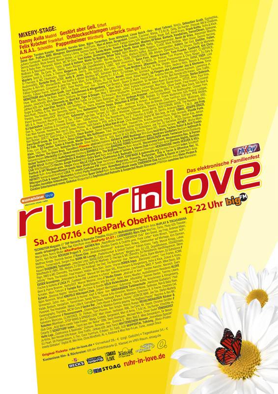 The 2nd July 2016 will be a great day for the whole family, cause it’s time for Ruhr-in-Love this year. More than 400 DJs and live-acts are waiting for you to celebrate the electronic familyevent („Das elektronische Familienfest“) at OlgaPark Oberhausen (Germany). The official event will be celebrated between from 12 – 22 o’clock on 40 decorated lovingly floors, but the event will go on through the whole night at 20 different after partys.