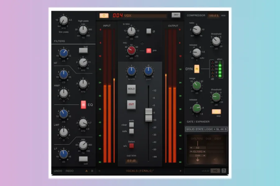 SSL released SSL 4K B, an emulation of the SL 4000 B – 1976 released and famously used in the ‘Stone Room’ at London’s Townhouse Studios. The console was responsible for countless iconic records, including Phil Collins’ ‘In the Air Tonight’, The Buggles’ ‘Video Killed the Radio Star’ and Peter Gabriel’s ‘Intruder’. Expertly modelled and with first-class integration with the SSL 360° Plug-in Mixer ecosystem, the 4K B plug-in is an authentic emulation of the SL 4000 B channel strip – full of tone, punch and rich non-linear analogue character.