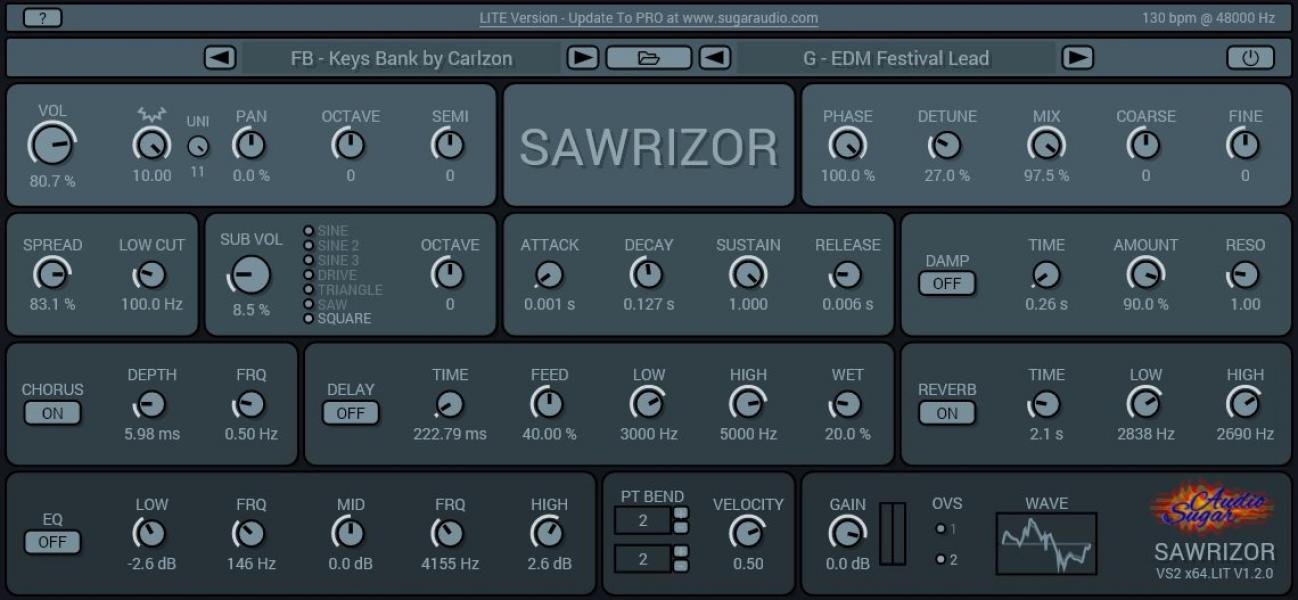 Sugar Audio developes exclusive free synthesizer Sawrizor Lite KEYS edition