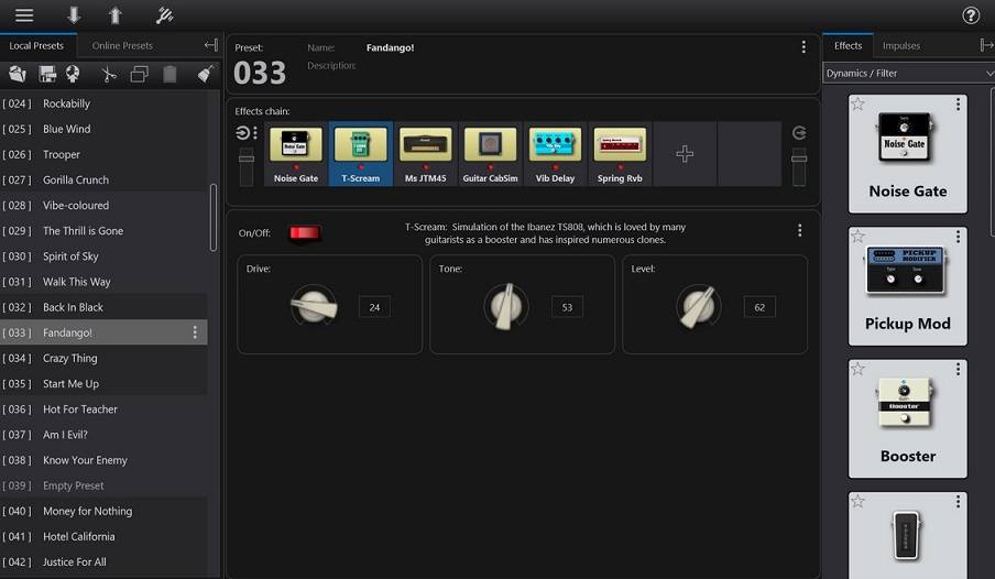 ToneLib-GFX is a collection of guitar amps, speaker cabinets and effects implemented in software for use with your computer, Windows PC or MAC. The software comes as a Standalone Application and as plug-ins for use with the most popular DAW (digital audio workstation) recording software. The Tonelib-GFX also supports 3rd party impulse responses (IRs), offering even greater tonal flexibility.