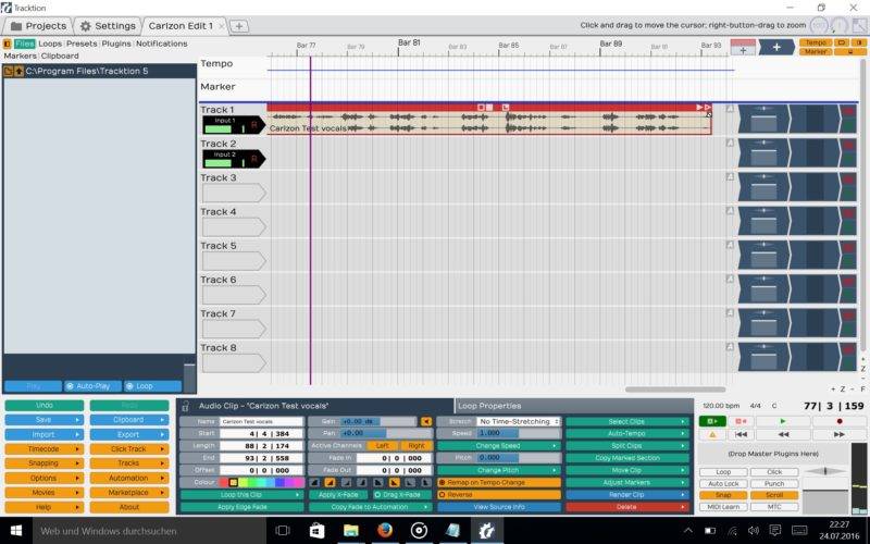Tracktion has decided to spend their single-screen DAW Tracktion 5 for free. The DAW has got an unlimited number of MIDI and Audio tracks and supports VST and AU-plugins. A mixer, EQ and step-sequencer is included and could be automised as well. You can compose, edit and record your tracks as you like it.