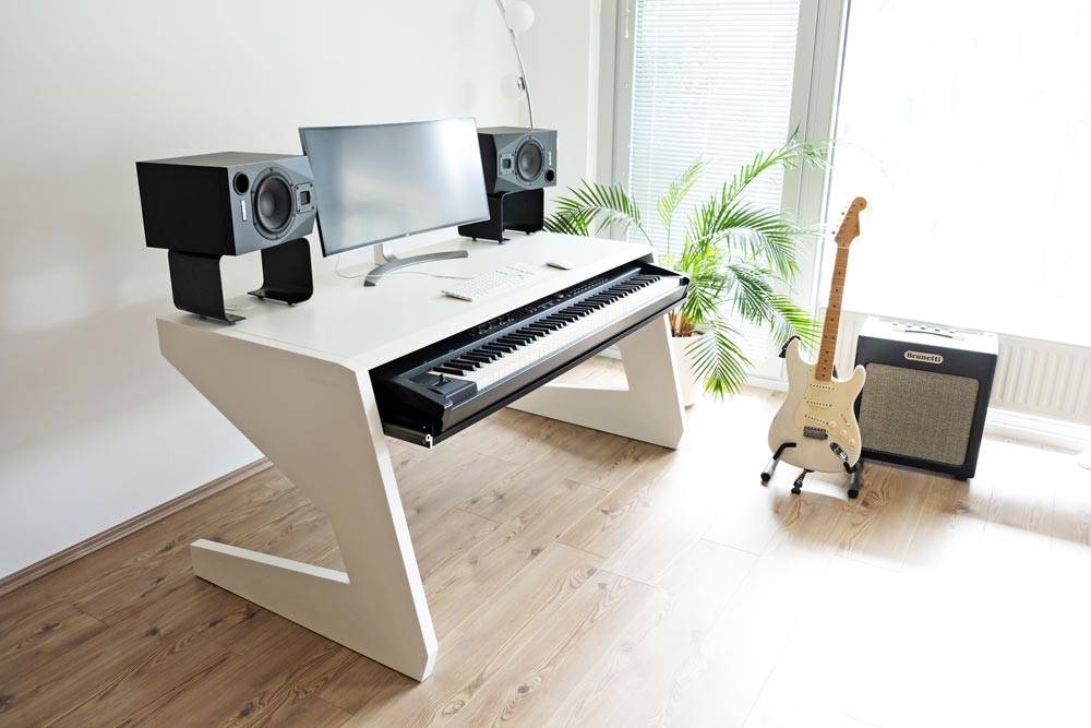 Studio furniture-maker UNTERLASS Studio Furniture is proud to announce availability of the KEY 88 — an abundantly spacious, master keyboard-accommodating workstation with clean lines lending itself to composing, film-scoring, and editing.