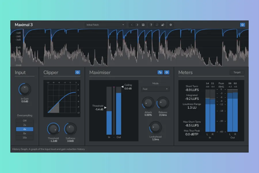 Venomode released Maximal 3, a true-peak brickwall limiter, soft clipper, and broadcast standard loudness meter. Maximal 3 is a loudness maximiser, designed to limit and maximise your track. Featuring both a true-peak brickwall limiter and a variable shape soft clipper, Maximal 3 can increase the overall loudness of your track, without destroying the sonic quality.