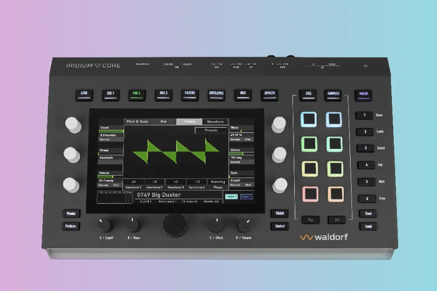 Connectivity continues with the same I/O included on Iridium Core’s IridiumDesktop and IridiumKeyboard synthesizer siblings — namely, stereo AUDIO In, AUDIO Out, and headphone output with Volume potentiometer, as well as USB Computer and Controller ports for MIDI and storage, MicroSD Card slot, and DC In 12V / 3A (external) power.Proudly ending on a high note, Waldorf Music CTO Rolf Wöhrmann puts Iridium Core — genuinely getting right to the heart of its Iridium synthesizer product line — into its rightful perspective: “Many performing musicians have asked us for a more compact and portable form factor for the incredible Iridium sound engine to pack into their travel bags or allow already densely-packed studio environments to more easily accommodate another hardware instrument. Inspired by their feedback, we came up with the Iridium Core concept, and are very proud of the finished result. Indeed, it’s a thing of beauty, ready to be taken anywhere, and we can’t wait to hear all the music made with Iridium Core!”