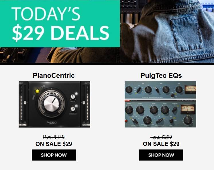 For the next ~24 hours there is a quite good deal at waves where you can grab the PianoCentric and PuigTec EQs plugin for just 29$ each.