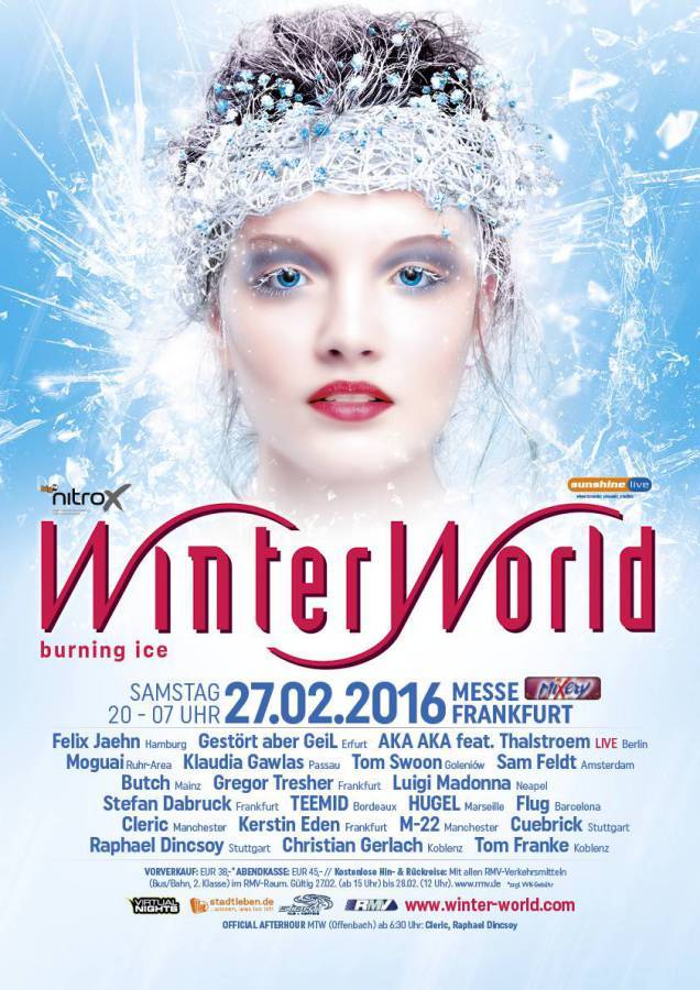 When it’s cold outside, and the beats and the night will be hot, you could be sure it’s time for “burning ice” – WinterWorld! On the 27th February 2016, i-Motion will create with WinterWorld an amazing event at Messe Frankfurt with 20 top DJs like Felix Jaehn, Aka Aka, Gestört aber GeiL, Moguai, Klaudia Gawlas, Thalstroem and much more… Don’t miss WinterWorld and save your tickets now.