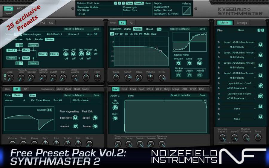 Here you’ll get our exclusive free preset pack for all SynthMaster2-users. It includes 25 presets for electronic music styles. Check out the demo-track and download the presets pack below.