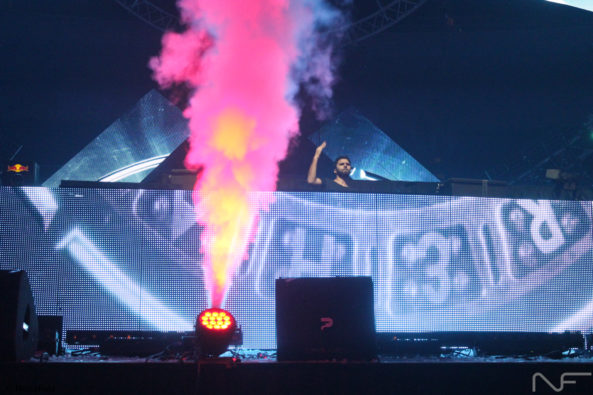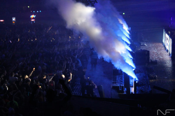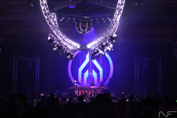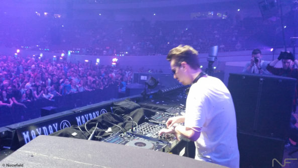 When „Friends of Mayday“ started their short but intensive show, the crowd started screaming together the battle cry „MAYDAY MAYDAY“ as loud as possible. Old classic tracks like „Hardcore Vibes“ and „OutsideWorld“ and an outstunning firework was a perfect warm-up for the superstar-DJ Robin Schulz. When Robin started there has been no empty space on the floor and everyone started singing to his hits like „Sugar“ and much more. A very progressive hard banging set followed by Blasterjaxx. The next one was R3HAB, he enjoyed to entertain the crowd very much with his versatile music styles, (a mixture of Dubstep and EDM) his performance and his light and pyroshow. Then Moguai took the task and decks to make the crowd dance.
