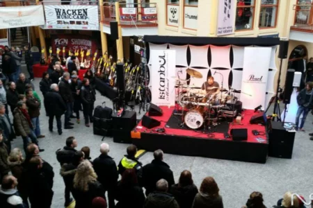 Die vor 15 Jahren von Ralf Dreeßen, dem Inhaber des Musikmarkts Rendsburg ins Leben gerufene Musikmesse, wusste auch dieses Jahr am letzten Januar-Wochenende zu überzeugen. Tausende Besucher konnten sich bei freiem Eintritt über Produktneuigkeiten von Licht- und Tonherstellern informieren und die im Musikmarkt verfügbaren Instrumente auf rund 1000 m2 direkt anspielen. Auch eine Ausbildungsstätte für Popularmusik, sowie eine lokale Musikschule stellten ihr Angebot vor. Der beliebte E-Gitarrenservice, bei dem Besucher preisgünstig neue Saiten an der eigenen Gitarre aufziehen und stimmen lassen konnten, war dieses Jahr erneut präsent. Zudem gab es zahlreiche preisgünstige Messeangebote, denen viele Musikanhänger verständlicherweise nicht widerstehen konnten.