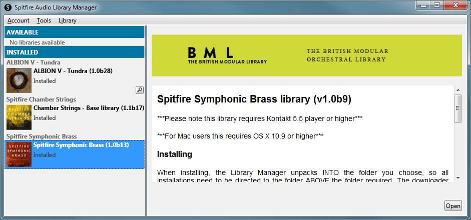 As mentioned in the Spitfire Chamber Strings – Review, Spitfire Audio provides a nice and clever tool – the Spitfire Audio Library Manager – for downloading and installing all the samples and the complete Spitfire Symphonic Brass library.