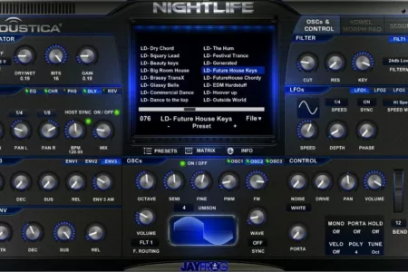 Acoustica and Dancelab (Jay Frog and CPS) have been released an outstunning freeware-synth – NIGHTLIFE. This delicious synth is a must-have for all EDM, House, Tech House, Future House, Dance