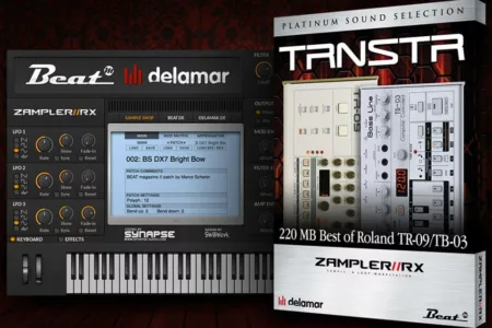 The german Beat magazine has released in cooperation with delamar.de the new sample-pack TRNSTR for their Zampler plugin. The collection contains a best of Roland TR-09/TB-03 with 20 basses and