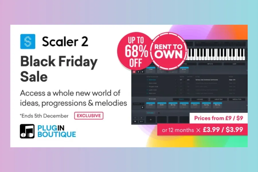 More to: Plugin Boutique Core Collection Black Friday & Rent To Own SalePlugin Boutique Scaler 2 & Rent To Own Black Friday Sale at Plugin Boutique with a great discount! Scaler 2, the inspirational and powerful music theory workstation that gives you