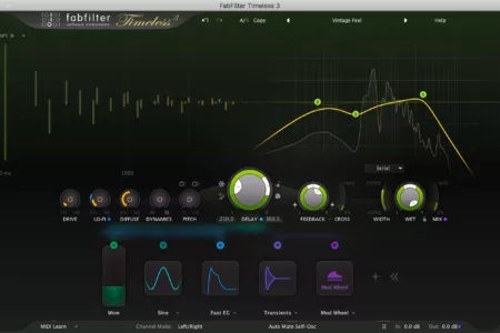 FabFilter is proud to announce immediate availability of FabFilter Timeless 3, the latest version of its award-winning tape delay plugin. Timeless 3 introduces a streamlined new interface, five feedback circuit