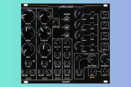Arcaico released Zaar, a module for creating percussive sounds, bass lines and synths. 4 analog voices, mixer with pan control, filter, stereo output, independent outputs for voice (these outputs are