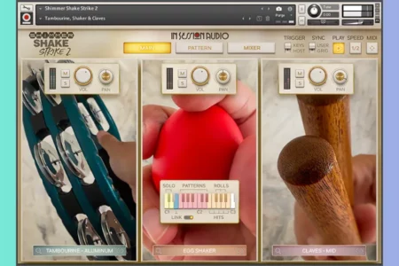 In Session Audio released Shimmer Shake Strike 2, a one-stop-shop for all your “top of mix” percussion needs. This sample library of tambourines, shakers, small hand percussion and more allows