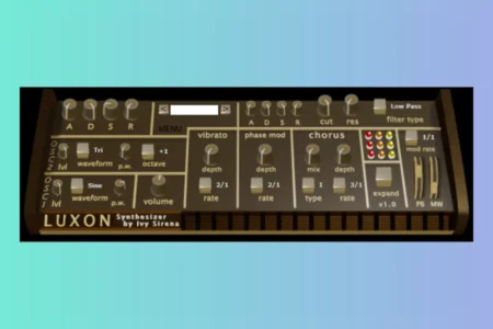 SynthIV released Luxon for free, an analog-modeling synthesizer in VST3 64bit format. Two oscillators are mixed into an amplifier and filter envelope, and features three types of stereo pitch modulation,